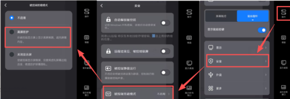 - 操作路径:如上图所示,在设置菜单中开启"被控制端防窥屏"。