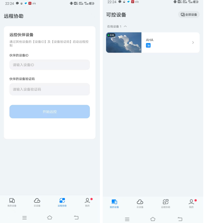 - 操作扁平化:常用的"文件传输"、"投屏"、"控制"按钮被直接平铺在卡片下方,将原本需要右键点击的二级菜单操作,提升为一级点击,操作效率提升50%以上。