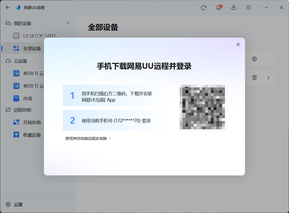 - 扫码绑定:图中的二维码扫描功能,不仅用于登录,更是为了实现设备间的快速握手。比如在网吧或临时设备上,扫码即可快速获得控制权,无需手动输入繁杂的ID。
