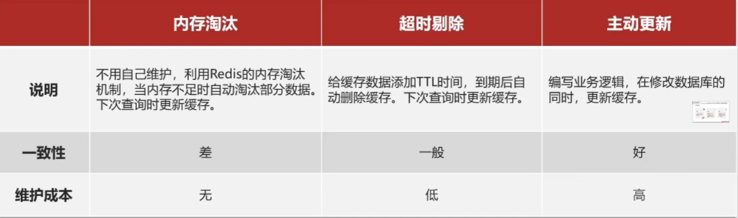 - 主动更新:我们可以手动调用方法把缓存删掉,通常用于解决缓存和数据库不一致问题