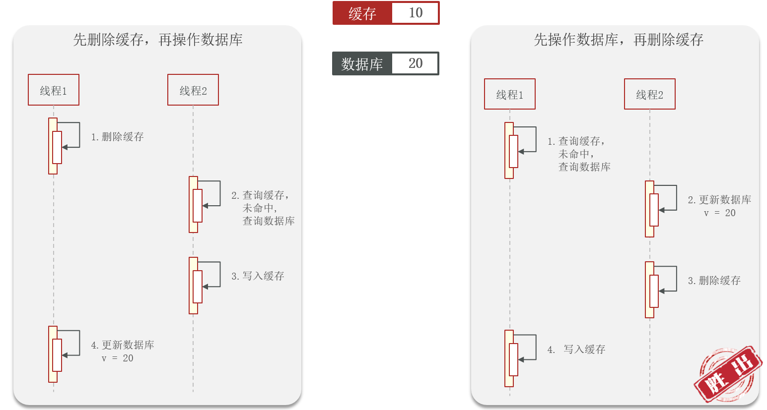 - 问题:由于我们的缓存的数据源来自于数据库,而数据库的数据是会发生变化的,因此,如果当数据库中数据发生变化,而缓存却没有同步,此时就会有一致性问题存在