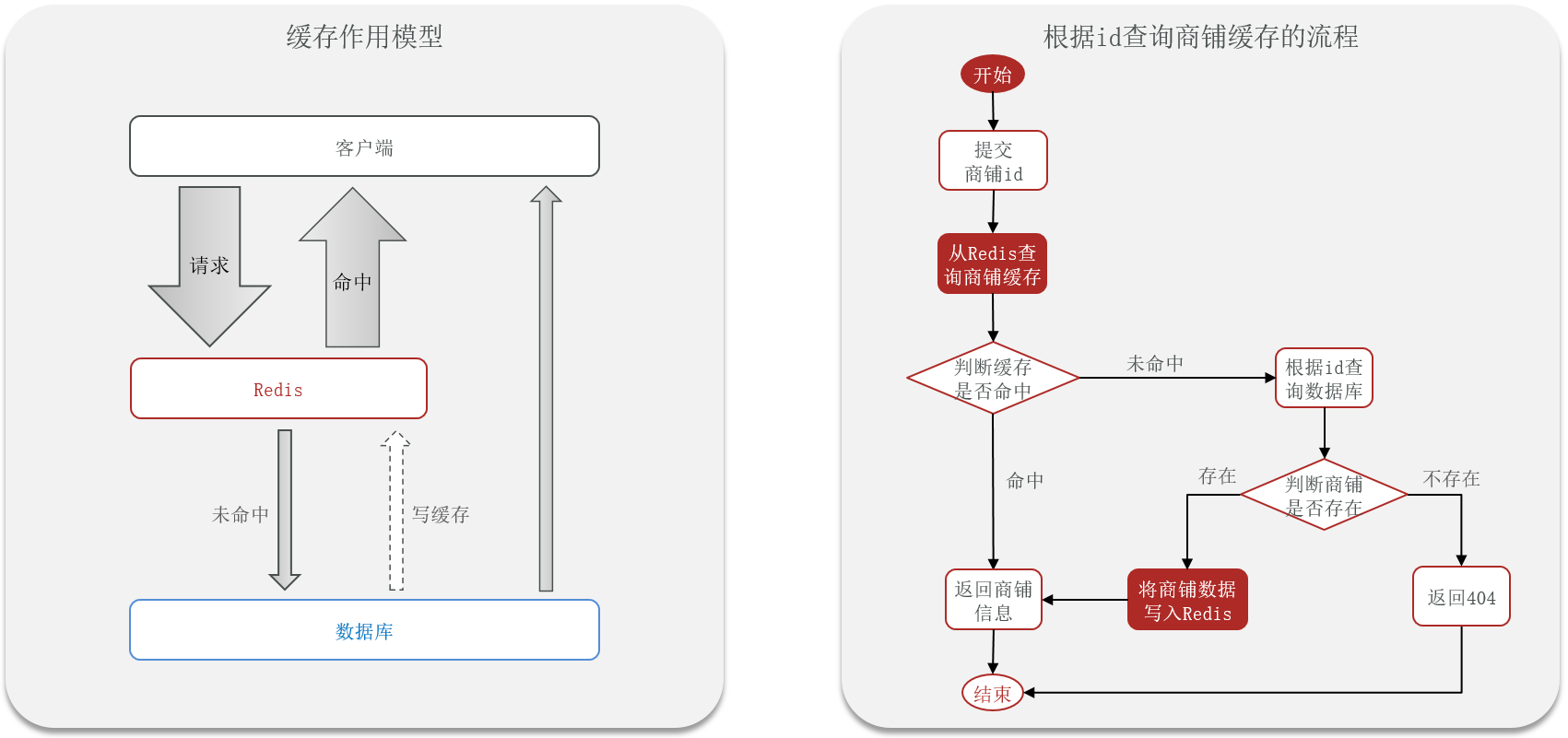 - 标准的操作方式就是查询数据库之前先查询缓存,如果缓存数据存在,则直接从缓存中返回,如果缓存数据不存在,再查询数据库,然后将数据存入redis。