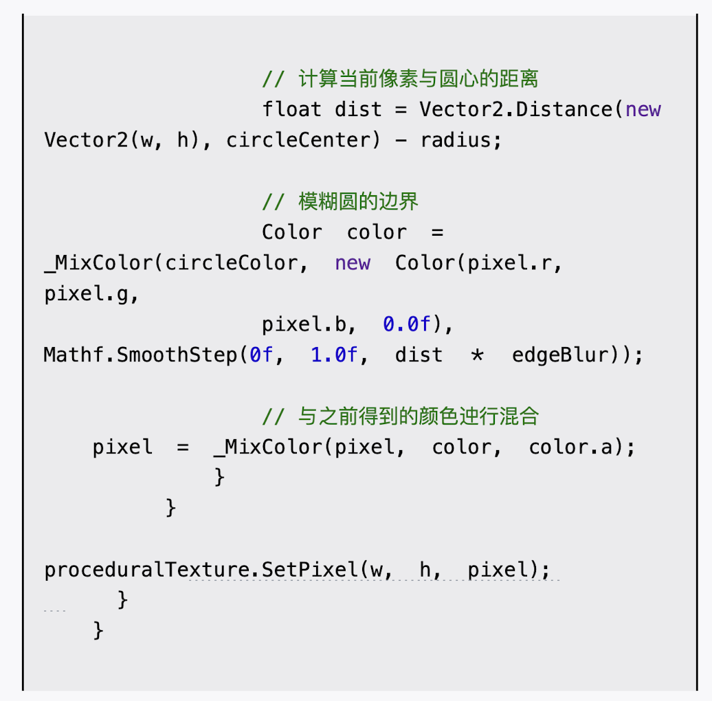 Color color = _MixColor(circleColor, new Color(pixel.r, pixel.g, pixel.b, 0.0f), Mathf.SmoothStep(0f, 1.0f, dist * edgeBlur));