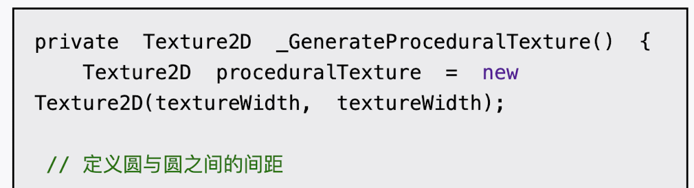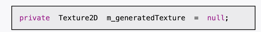 private Texture2D m_generatedTexture = null; //保存生成的程序纹理,我们声明一个Texture2D类型的纹理变量