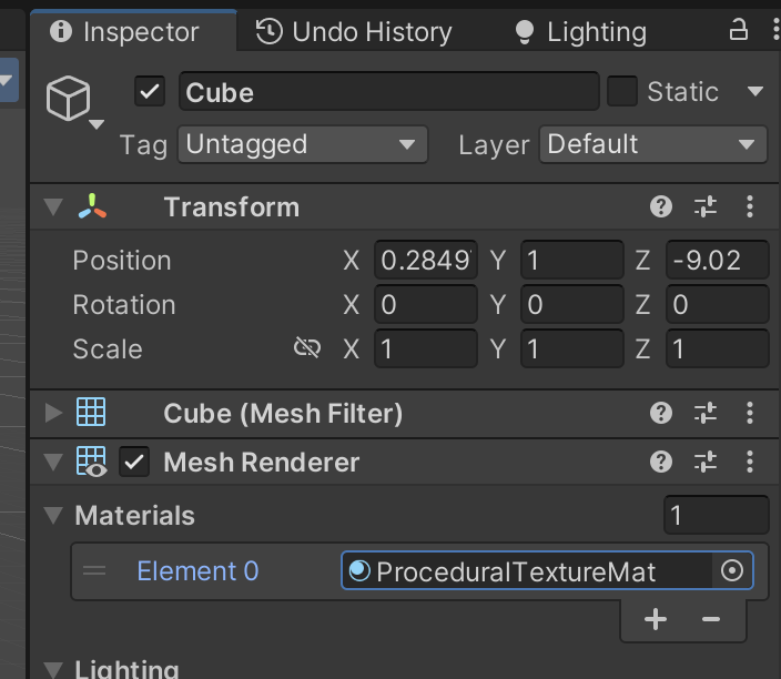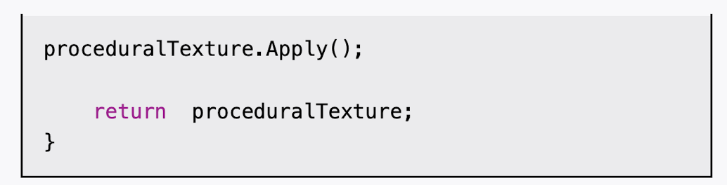 proceduralTexture.Apply(); //强制把像素值写入纹理中,并返回该程序纹理