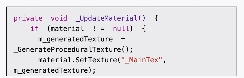 material.SetTexture("_MainTex", m_generatedTexture); //生成的纹理赋给材质