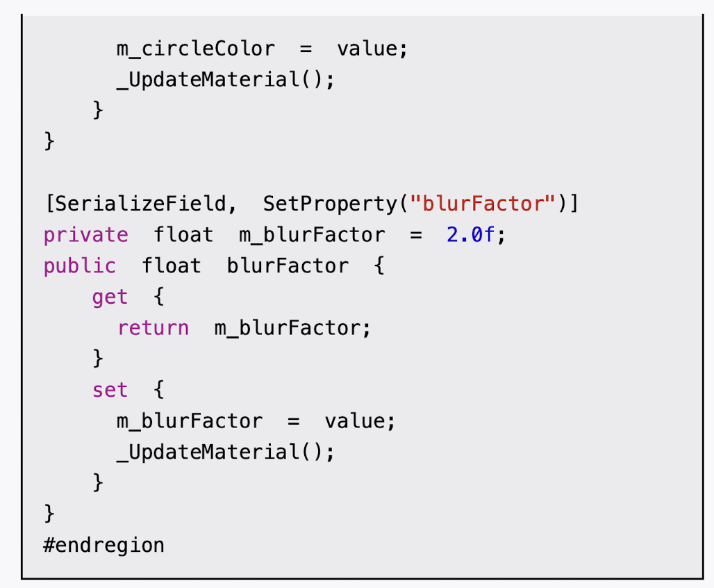[SerializeField, SetProperty("blurFactor")] //模糊因子,这个参数是用来模糊圆形边界的。