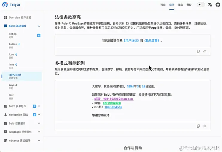 使用者可以独立模块包,或者使用 tolyui 全家桶来使用 HighlightText 组件。