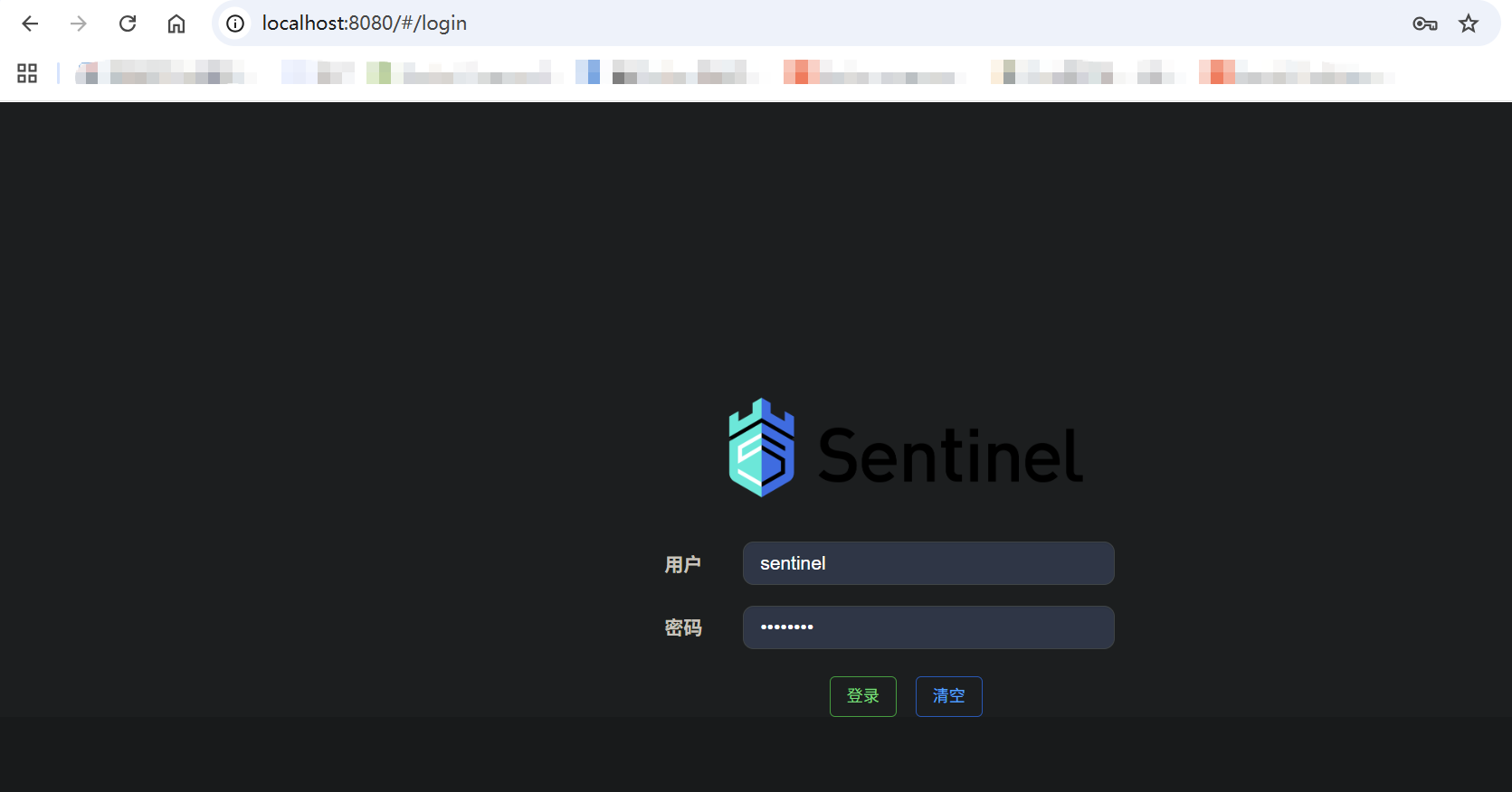 访问http://localhost:8080, 进入控制台, 默认用户名/密码均是sentinel