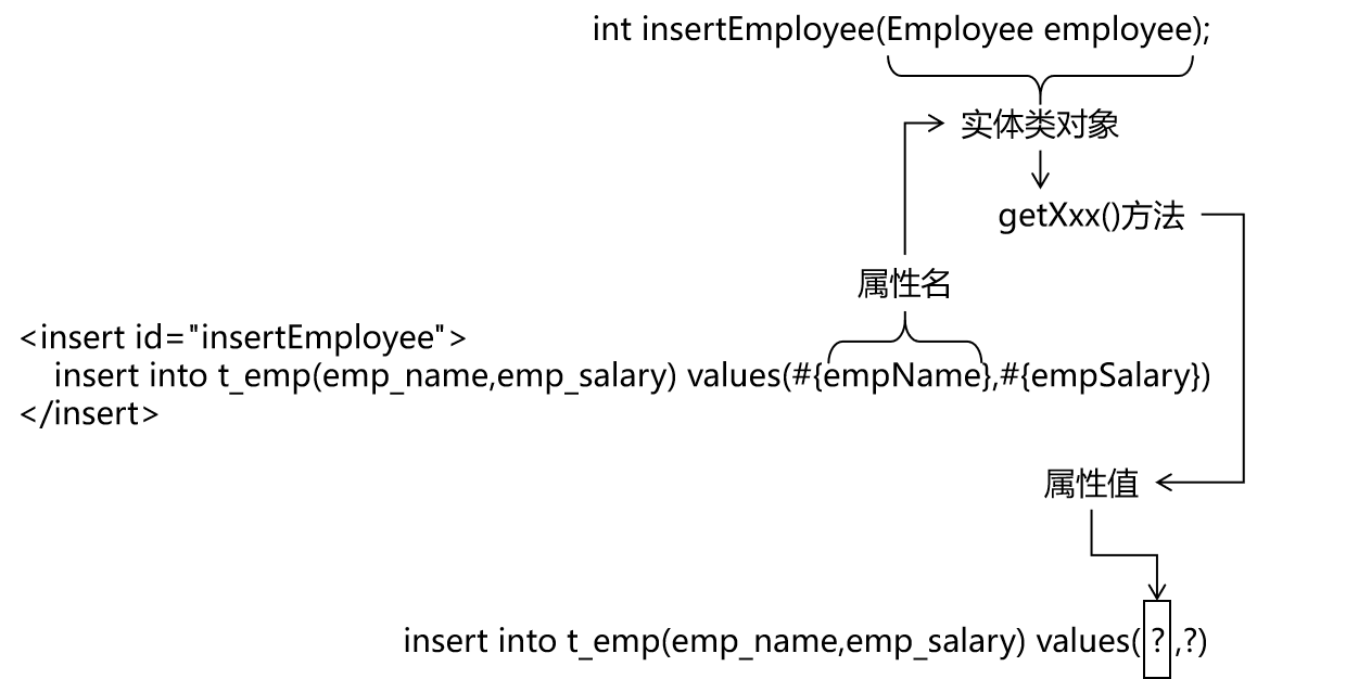 insert into t_emp(emp_name,emp_salary) values(#{empName},#{empSalary})