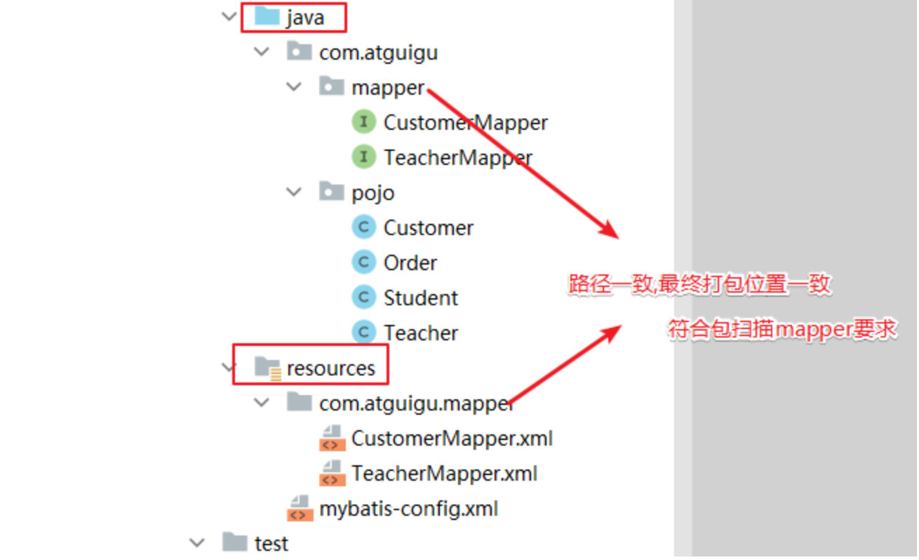 - Mapper 配置文件放在 Mapper 接口所在的包内