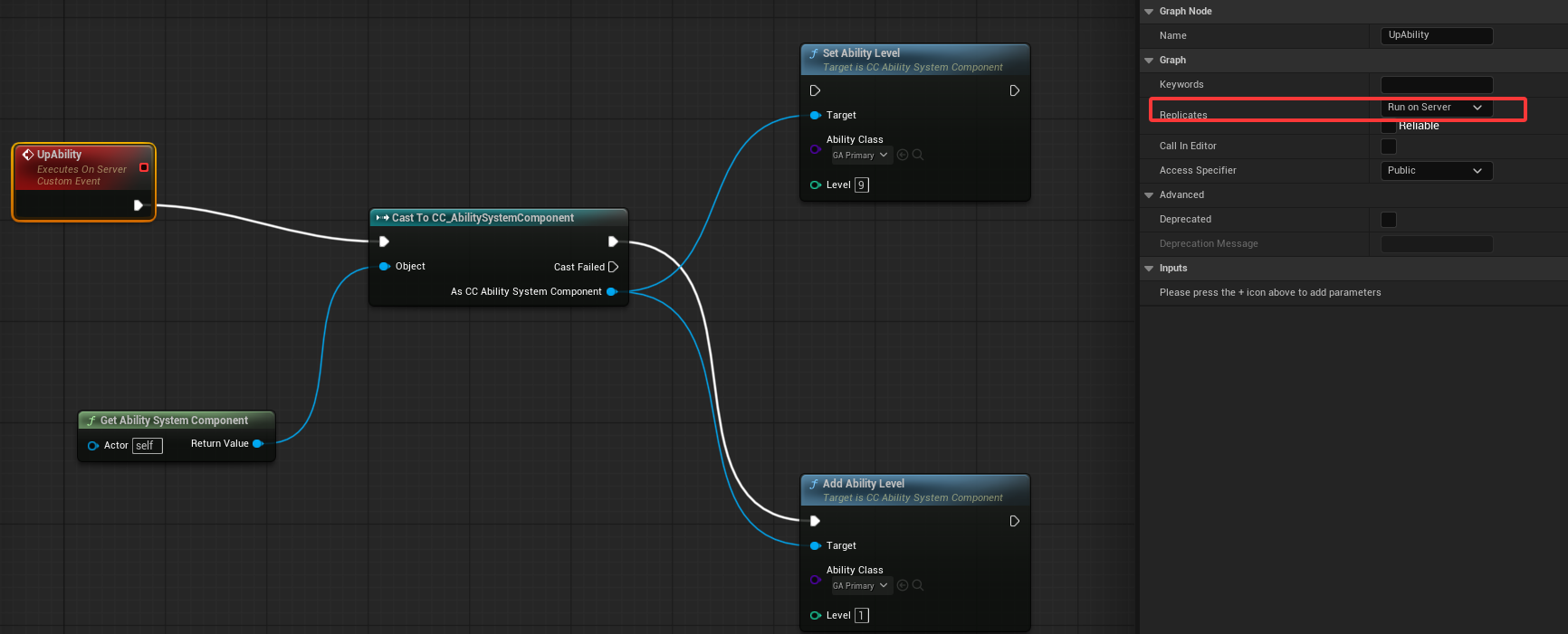 测试升级,由于升级需要在服务端执行,所以创建蓝图服务端运行事件