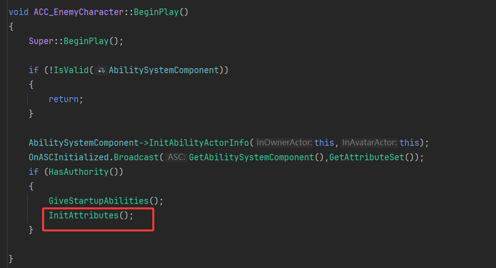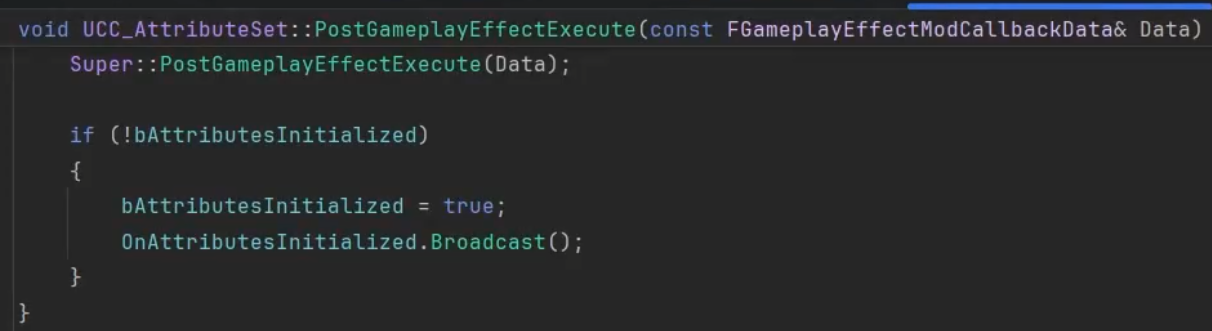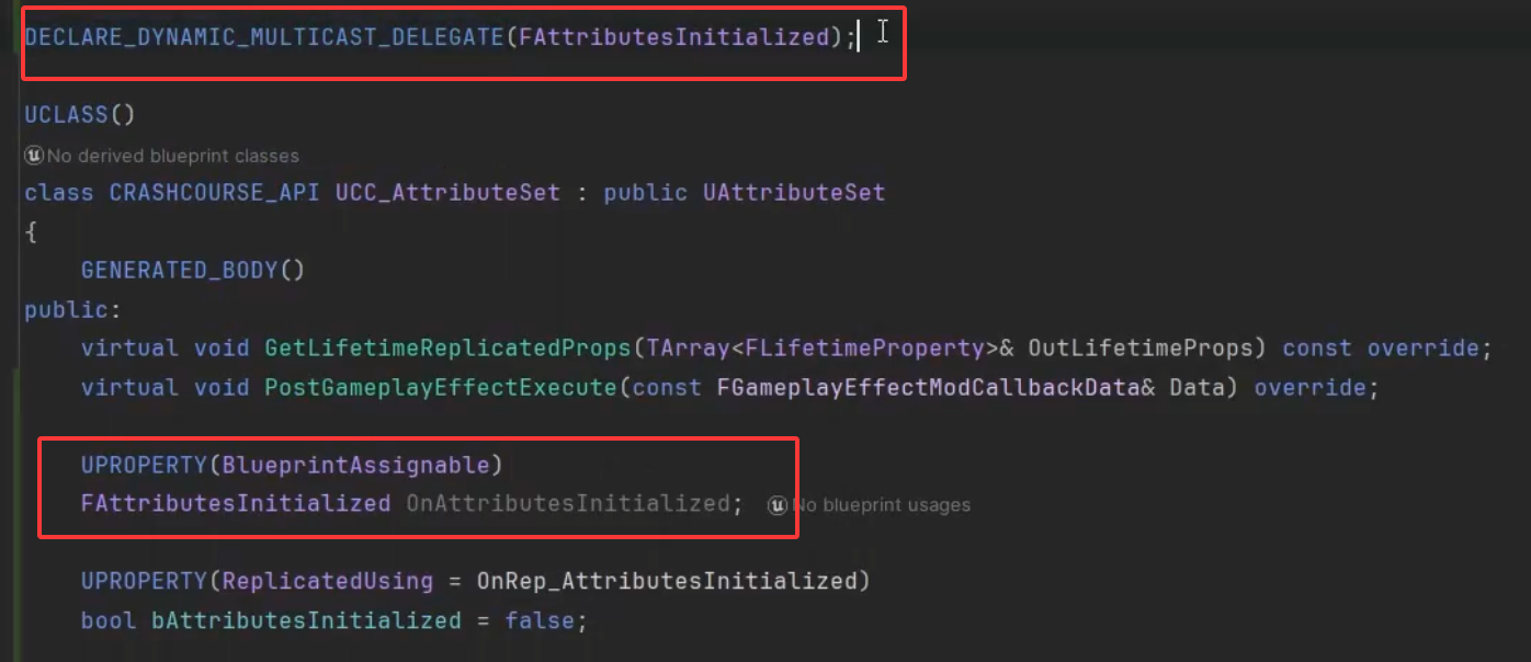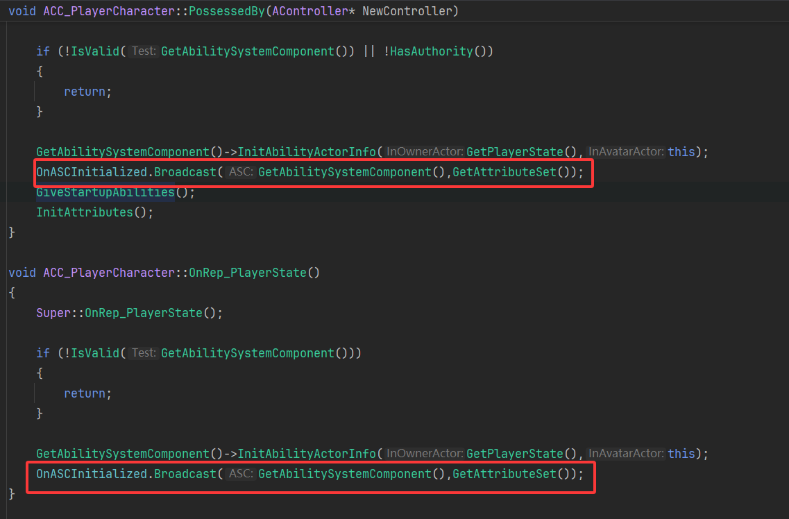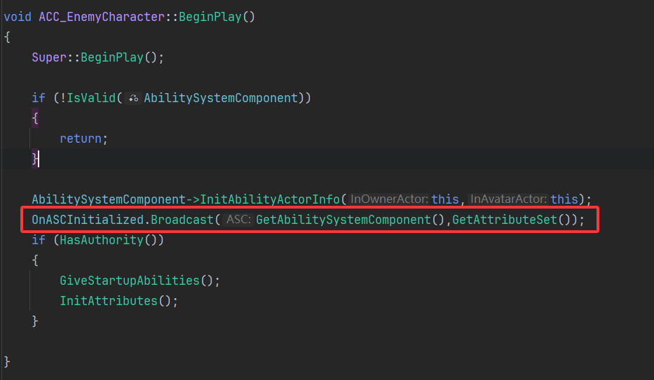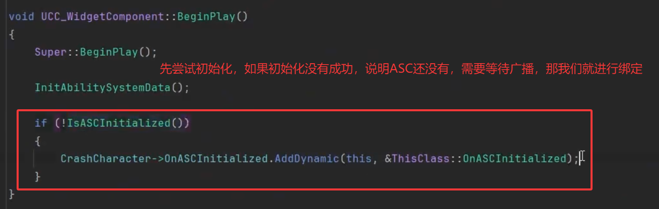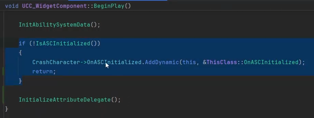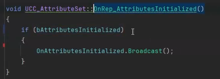 按照如上的在组件的BeginPlay调用,显然存在问题,客户端可能还没有初始化完成AttributeSet以及ASC,所以我们要等待这些初始化后调用。我们将使用委托的方式进行广播。
