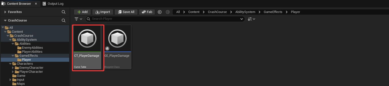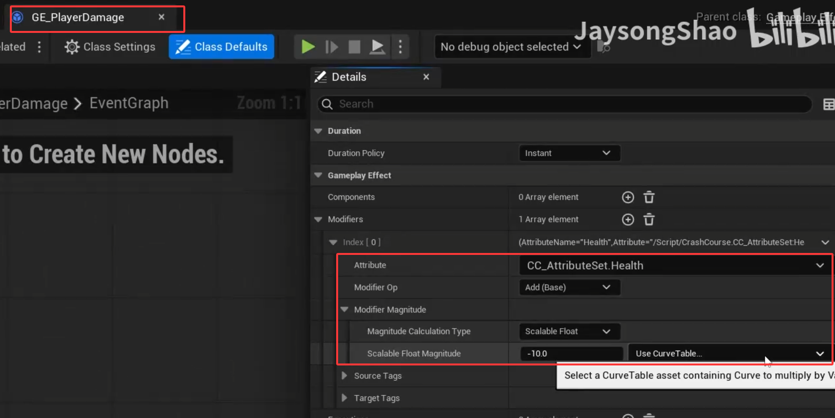 这样就能将伤害数值映射到曲线表,也是为了之后我们升级我们的技能。
