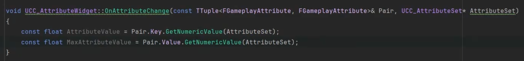 void UCC_WidgetComponent::BindWidgetToAttributesChange(UWidget* InWidget,const TTuple<FGameplayAttribute, FGameplayAttribute>& Pair) const