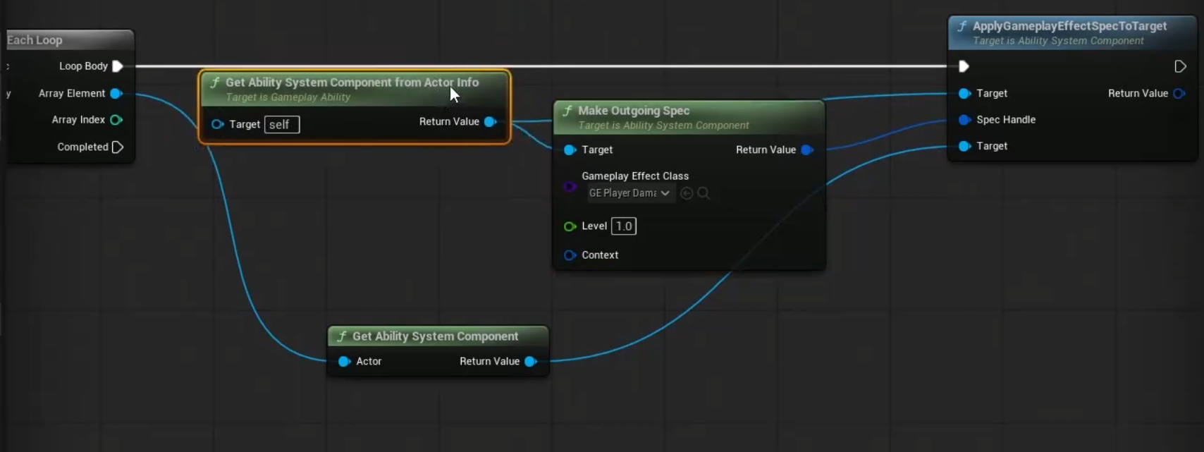 回到主要游戏能力蓝图,当我们判断集中的敌人Actor数组进行遍历,对其应用游戏效果