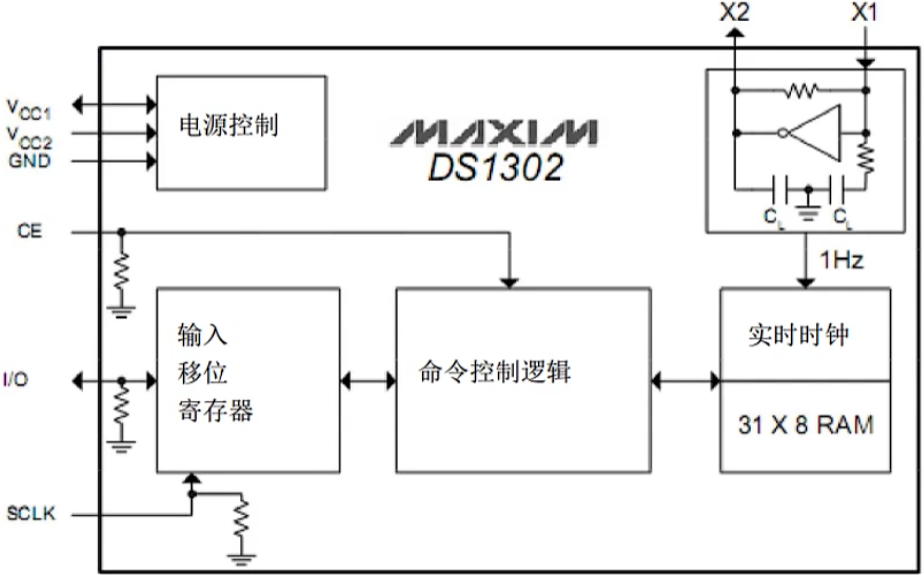- DS1302是由美国DALLAS公司推出的具有涓细电流充电能力的低功耗实时时钟芯片。它可以对年、月、日、周、时、分、秒进行计时,且具有润年补偿等多种功能