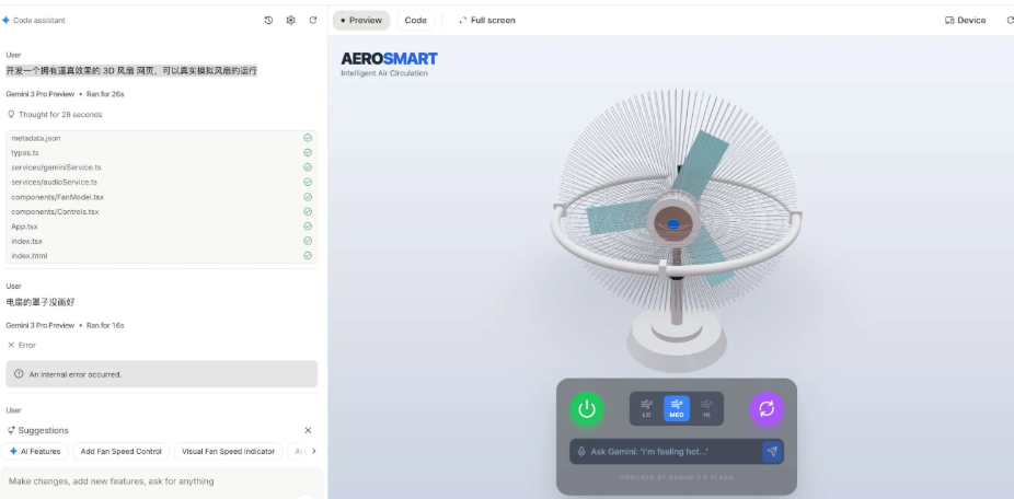 特别是在有了AI Studio Build这种工具的加持,让他在从零生成一个Web应用程序这个场景下更是如虎添翼。另外,在指令遵循,需求理解的能力上,相比上一代的Gemini 2.5确实是带来了很大的削弱的增强。
