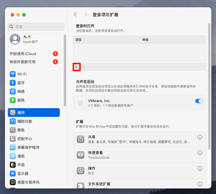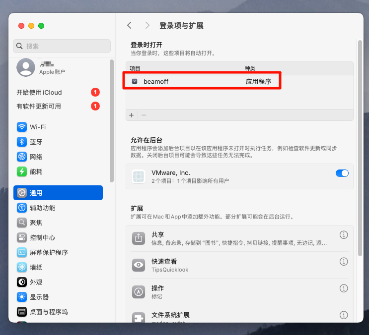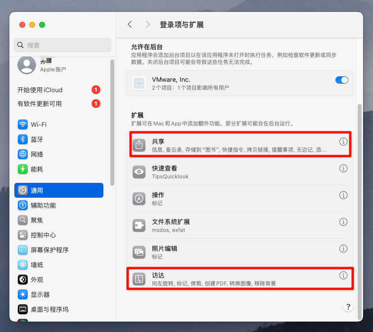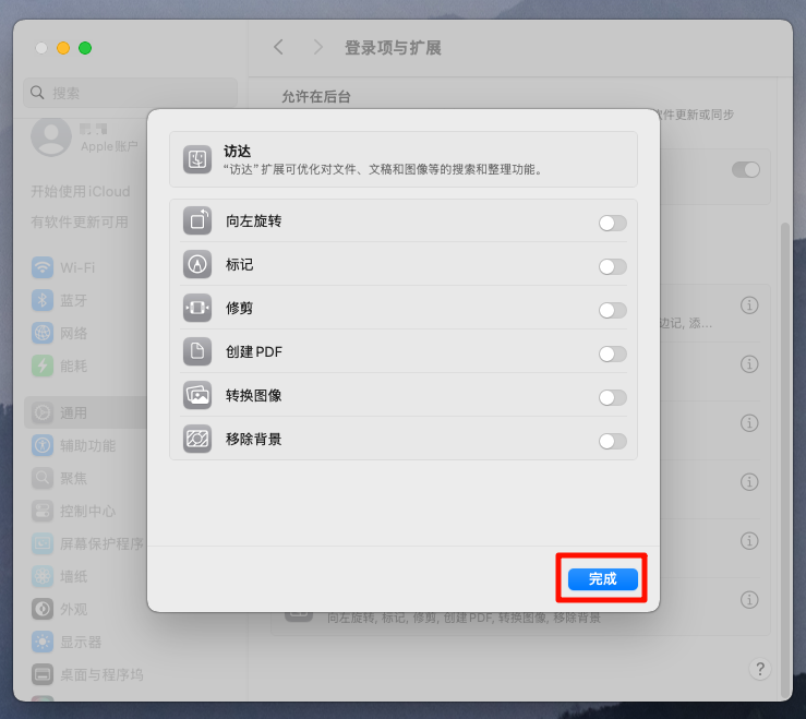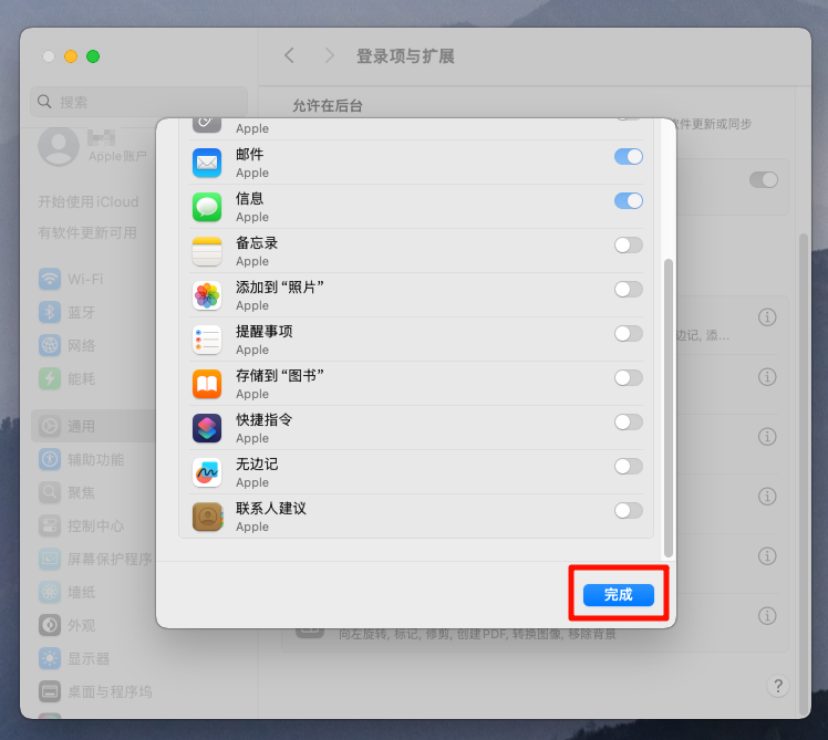 系统设置→通用→登录项与扩展,将共享和访达的选项都去掉