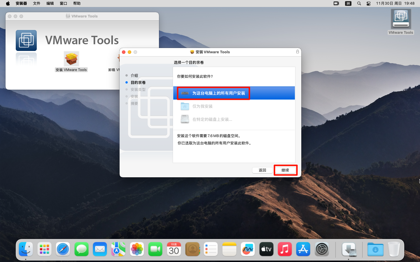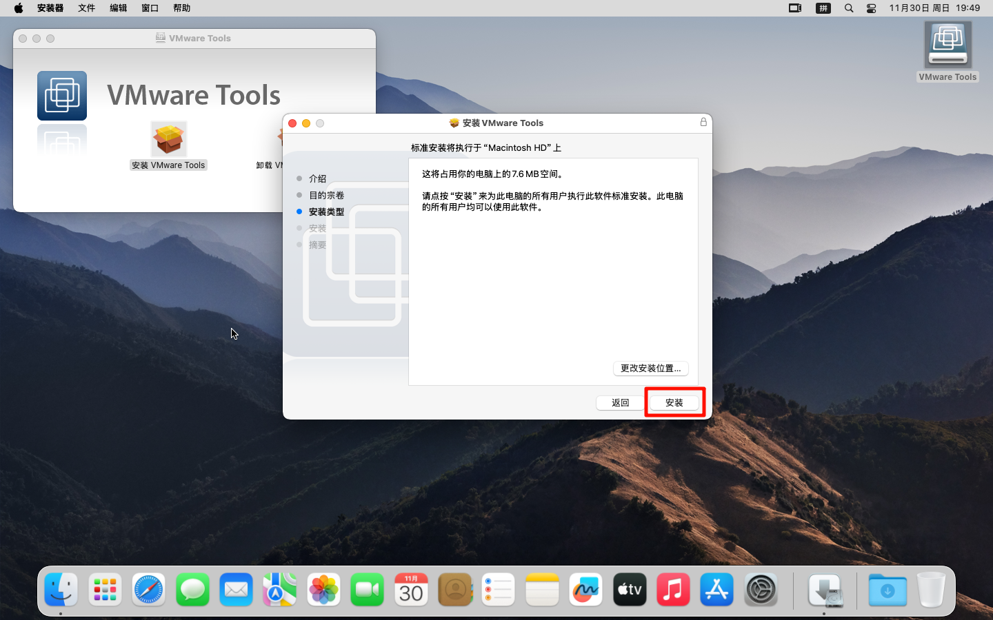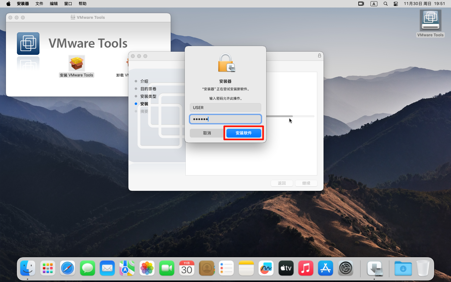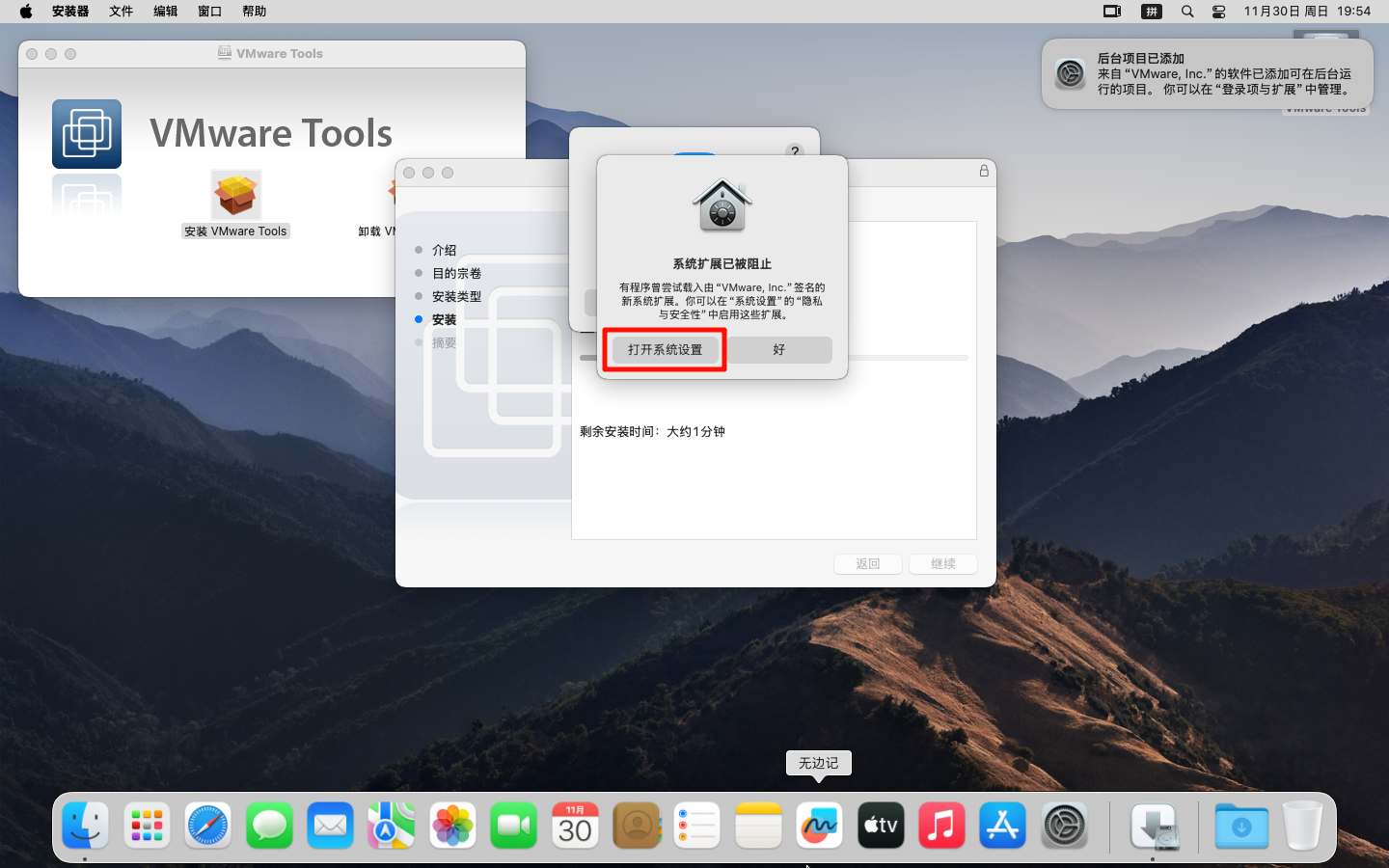 第一次放文件,会提示需要允许VMtools使用辅助功能,操作如下