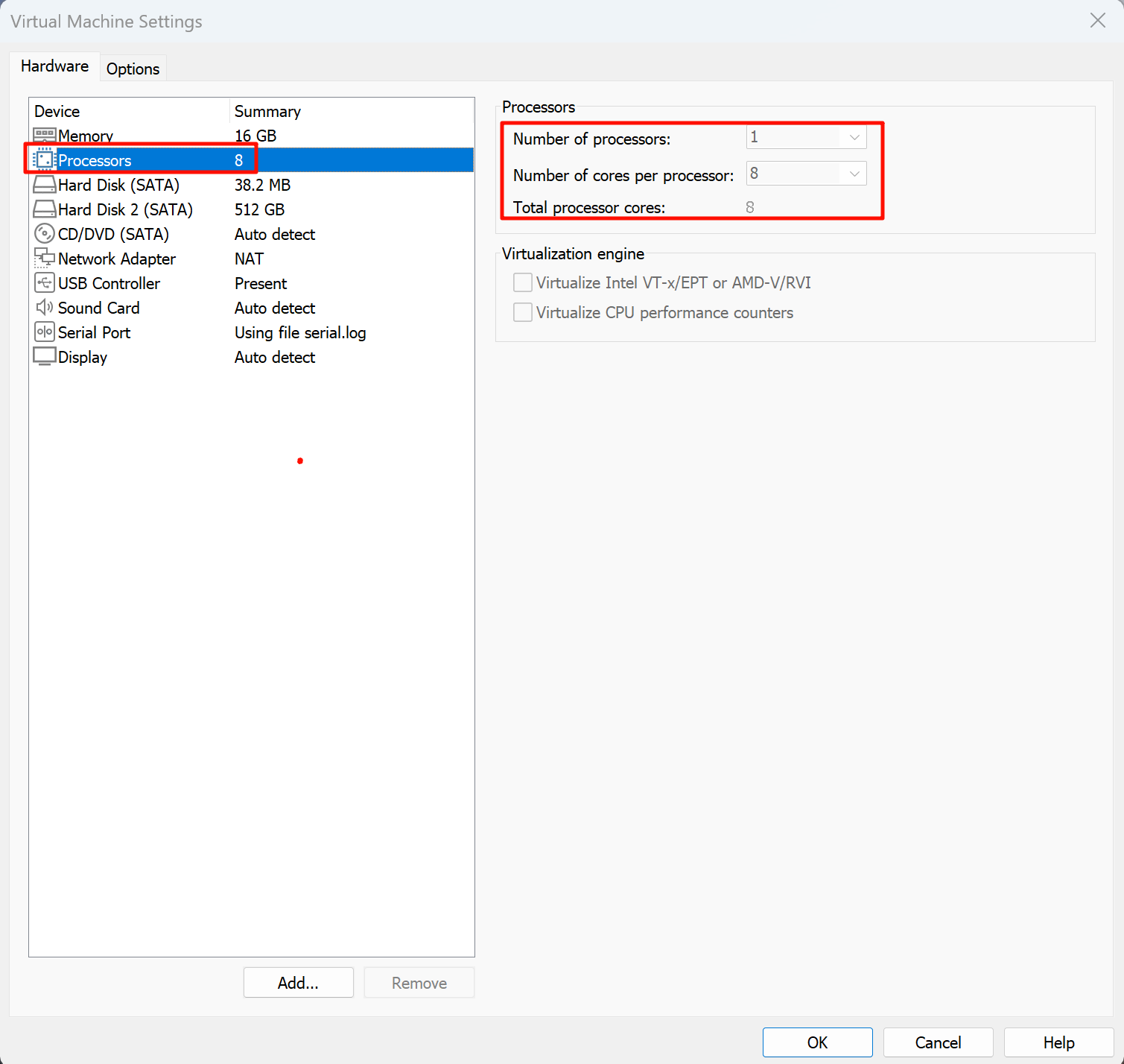 内存已经调整到16GB了,看情况增减,CPU这里我调整到8核,因为H 255最多也就16核心,这个看每个人不同情况。
