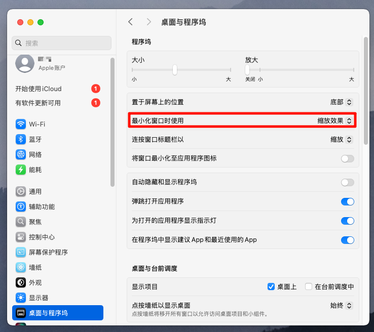 系统设置→桌面与程序坞,将最小化窗口时使用改为缩放效果