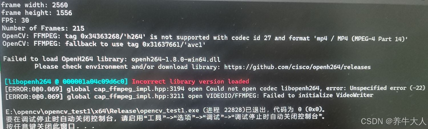 OpenCV: FFMPEG: tag 0x34363268/'h264' is not supported with codec