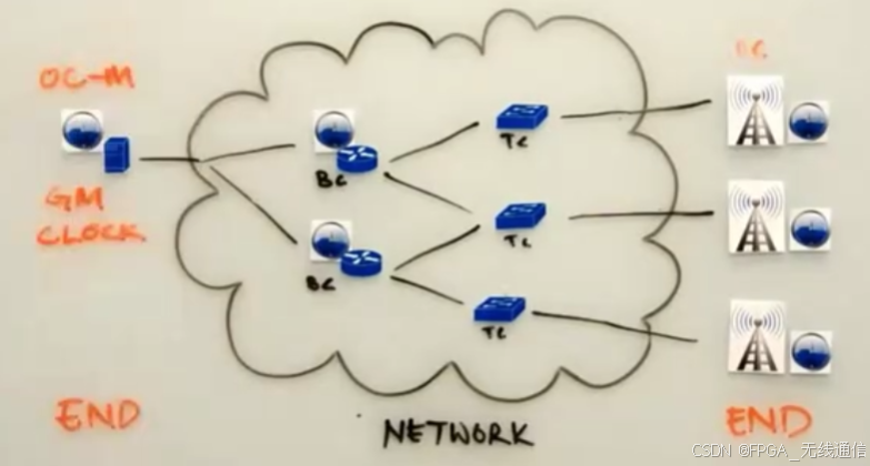 主时钟(通常是BBU或专门的时钟源)向从时钟发送一个