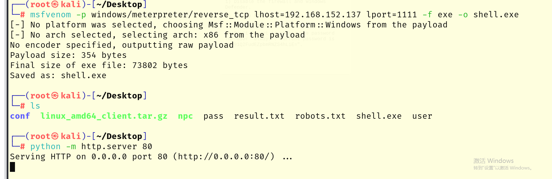 使用windows下载执行上线,应该使用命令的,但是我这环境好像有问题