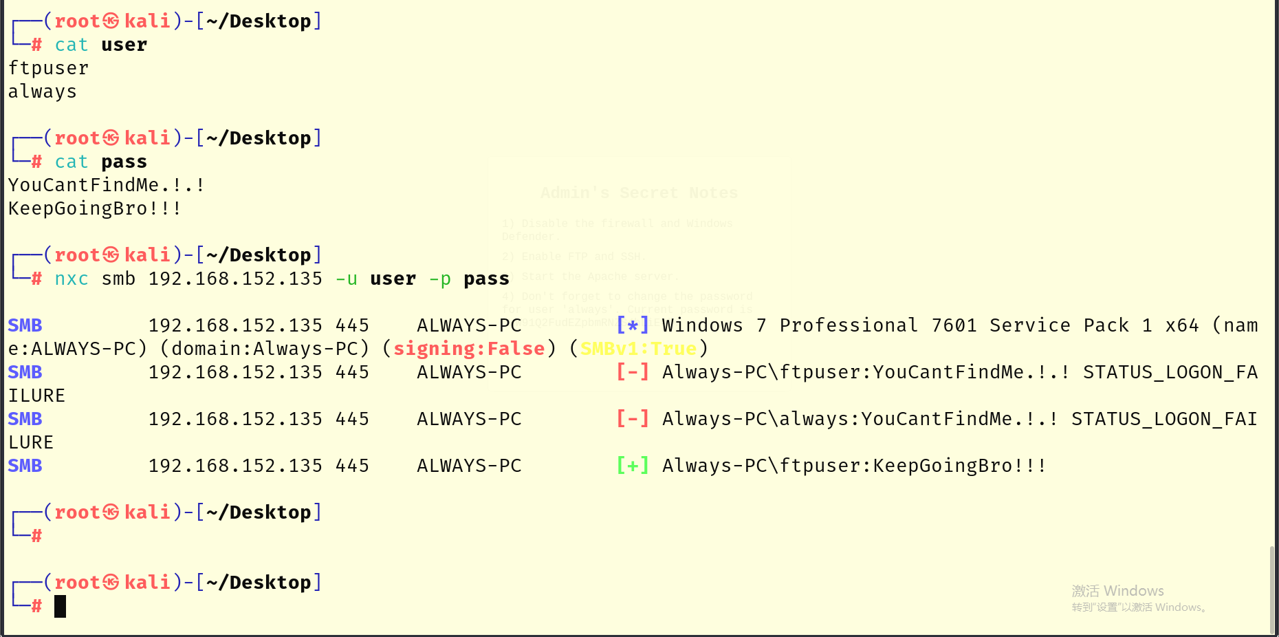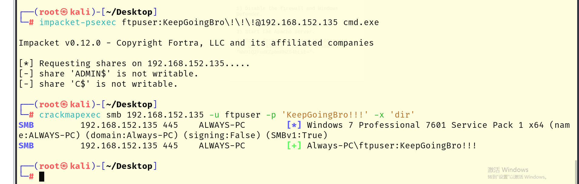 [2.1s] [+] NetBios 192.168.152.135 WORKGROUP\Always-PC Windows 7 Professional 7601 Service Pack 1