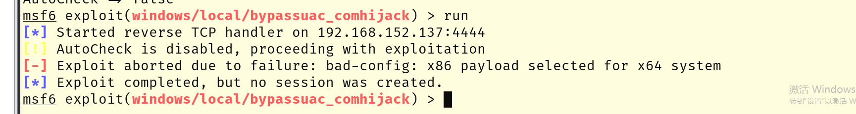 可以看到找到了好几个,试试exploit/windows/local/bypassuac_comhijack