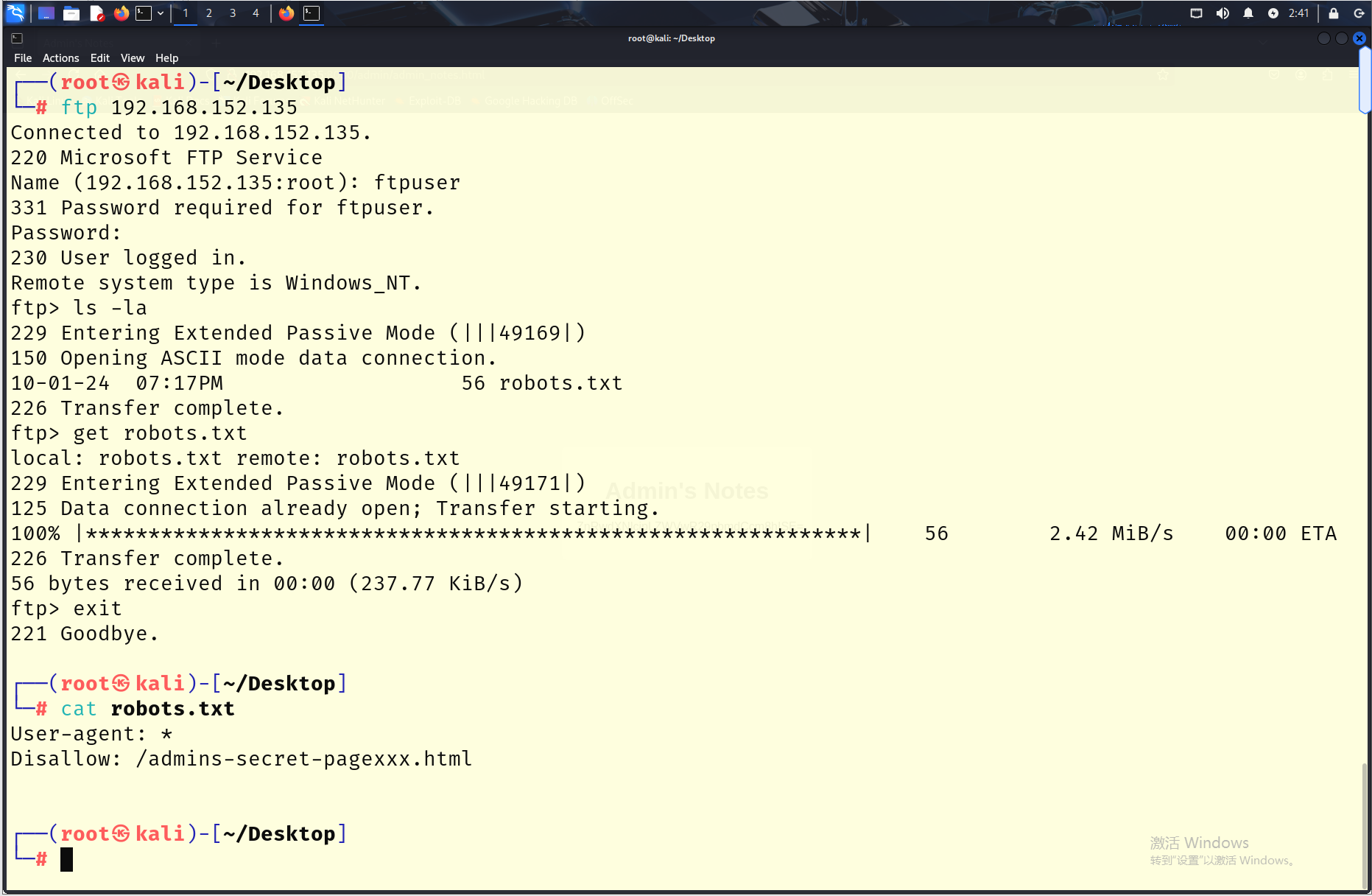 使用ftp来登录,有一个robots.txt,查看,然后访问给出的爬虫网页文件