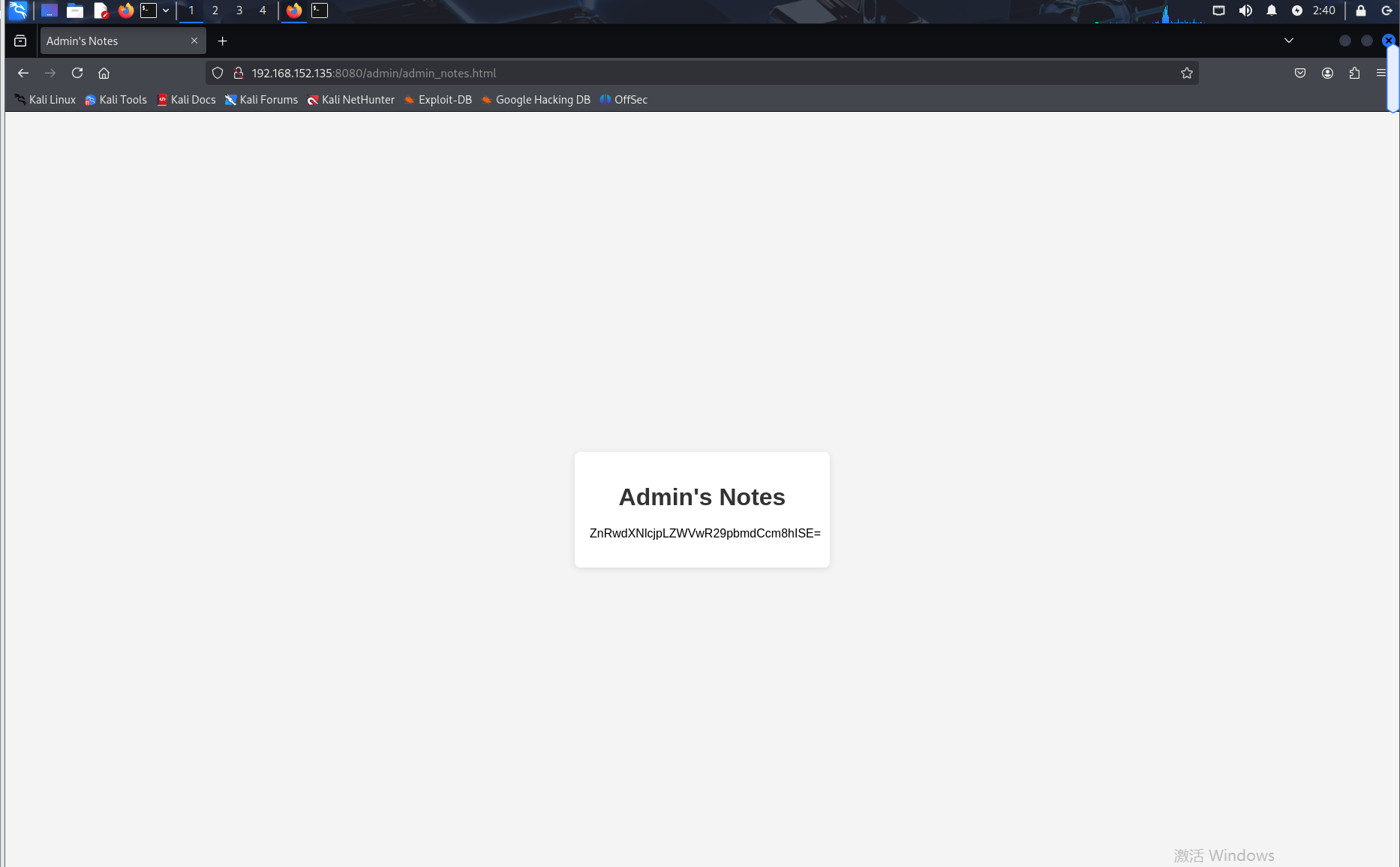 使用给的账号密码登录,给了一个提示信息,但是是base64加密的