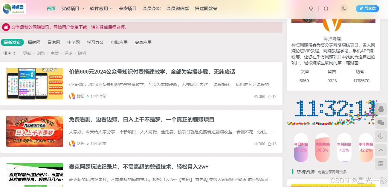 网站前端可自由排版,导航栏、资源分类、站长推荐、网站新发布、网站滚动信息、用户注册等版块,都可在后台进行设置。网站具有多变性和个性化,适用于各类知识付费资源类网站。