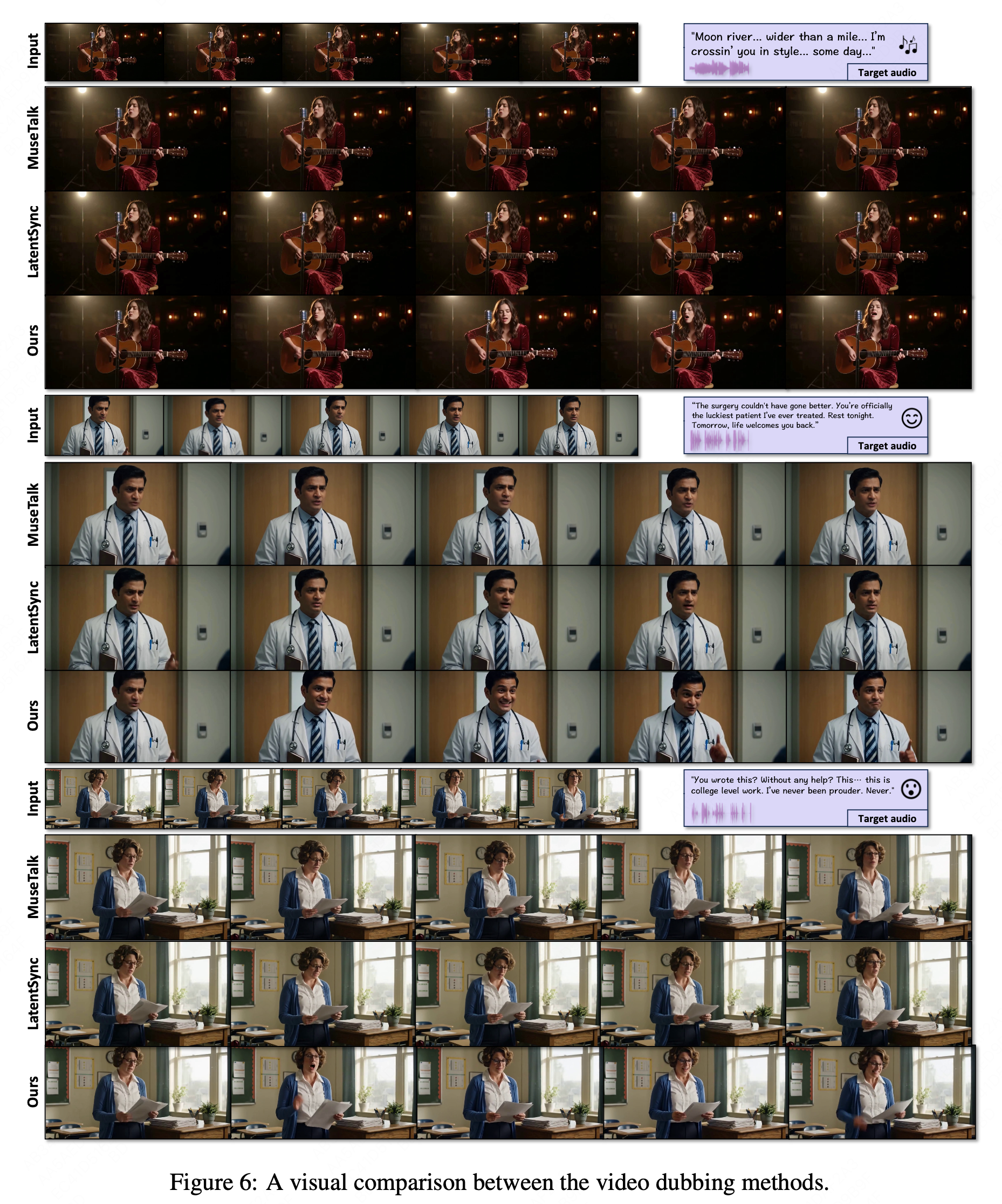 与不同的 video dubbing 方法对比: