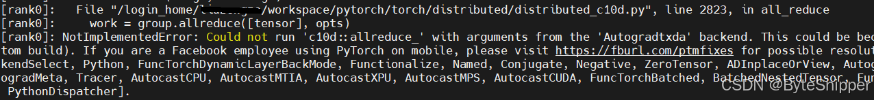 NotImplementedError: Could not run 'c10d::allreduce_' with arguments from the 'Autogradtxda' backend.