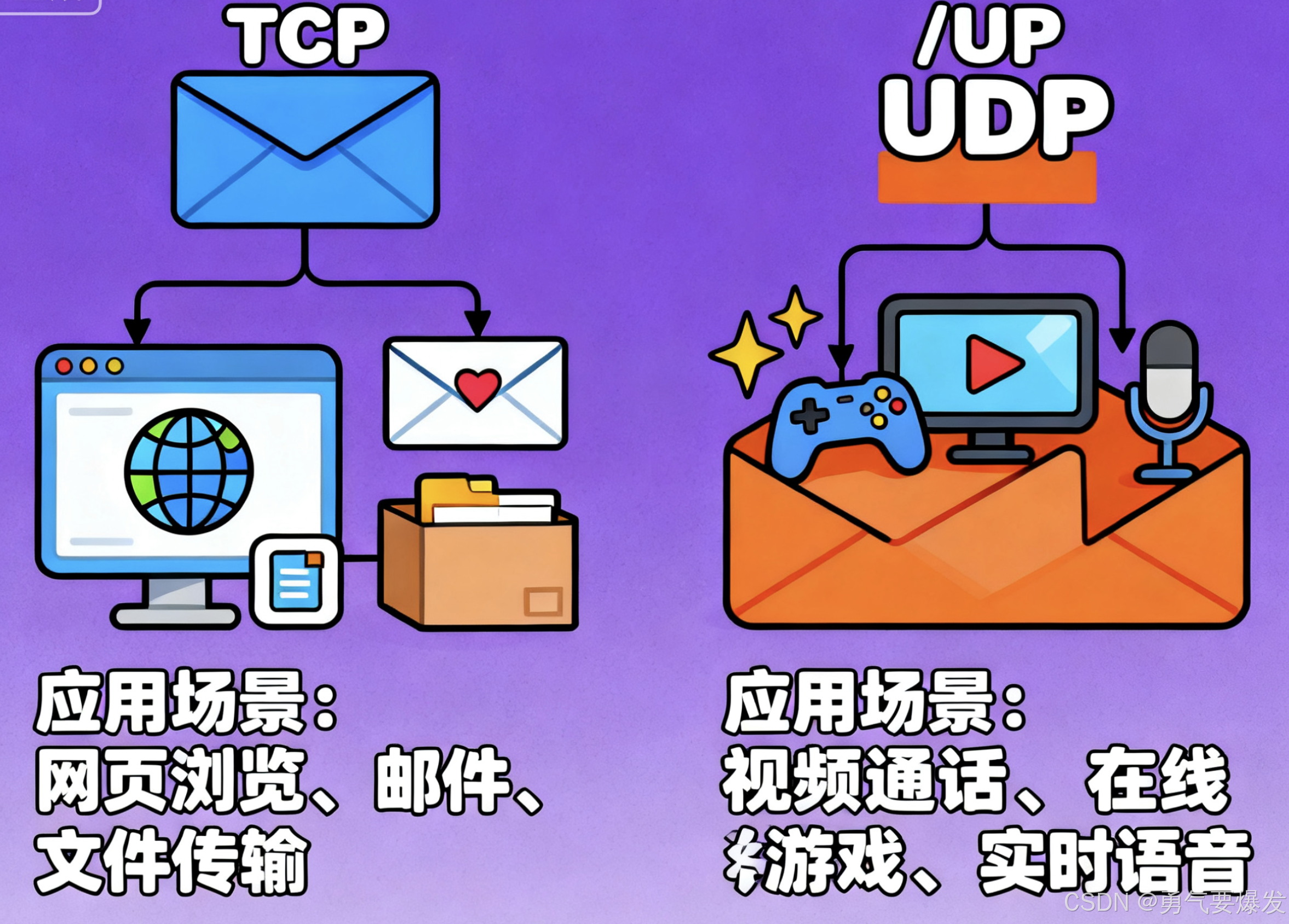 | L4 | 传输层 | TCP, UDP | 📡 端口通信 (443/80) | 重点:TCP/UDP在这里 |