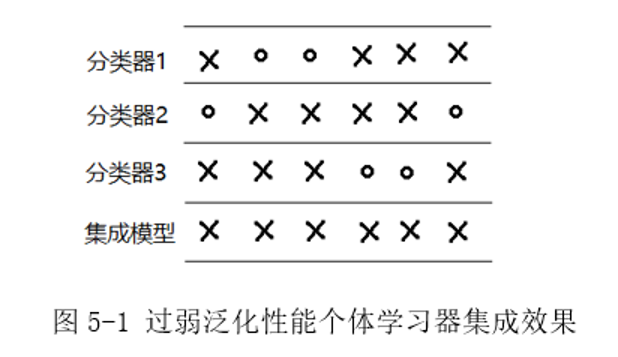 集成学习将多个性能一般的普通模型进行有效集成,形成一个性能优良的集成模型,通常将这种性能一般的普通模型称为个体学习器。