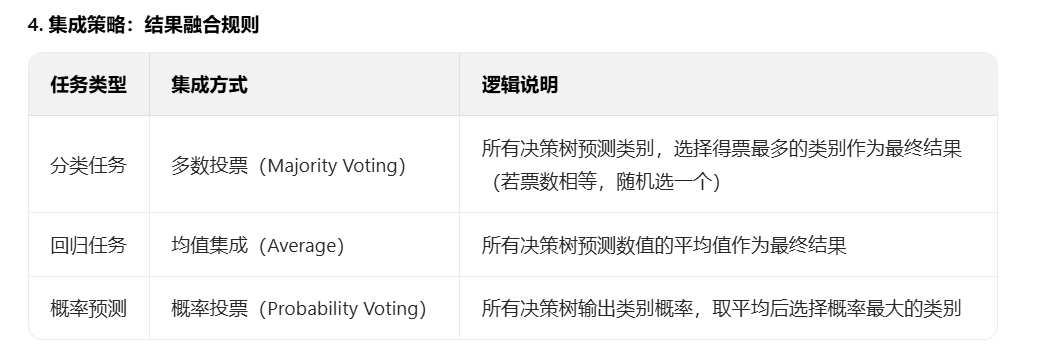 - 并行性:所有决策树独立训练,无依赖关系,可并行计算;