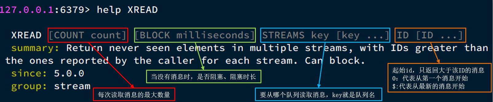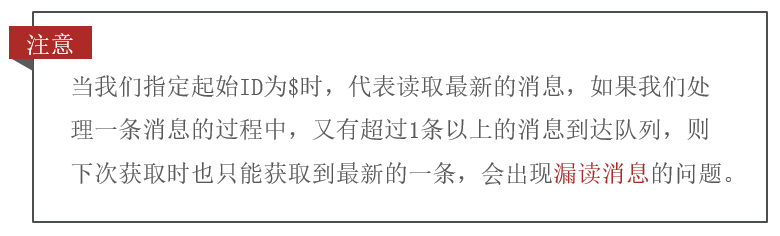 - ID:起始ID标示,$代表队列中最后一个消息,0则代表队列中第一个消息