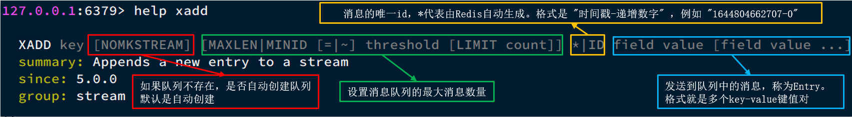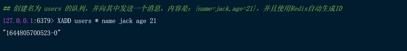 - 创建一个Stream类型的消息队列,名为stream.orders