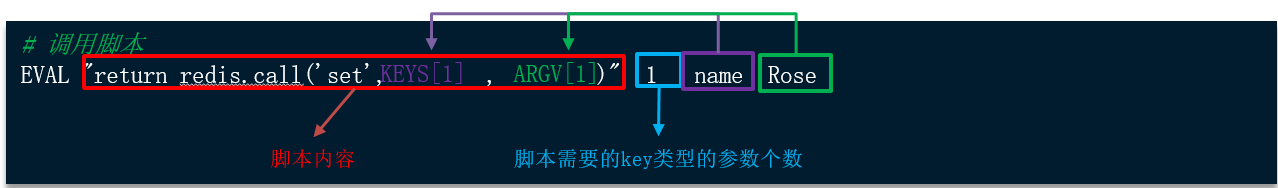 - 例如,我们要先执行set name Rose,再执行get name,则脚本如下: