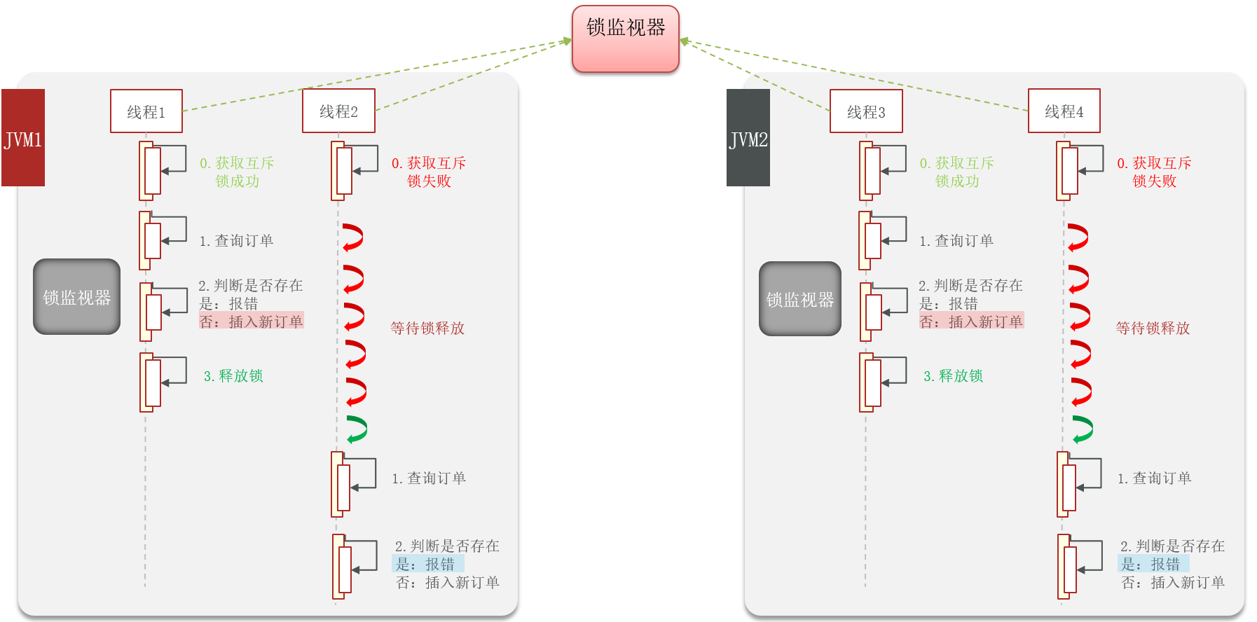 - 分布式锁的核心思想就是让大家都使用同一把锁,只要大家使用的是同一把锁,那么我们就能锁住线程,不让线程进行,让程序串行执行,这就是分布式锁的核心思路