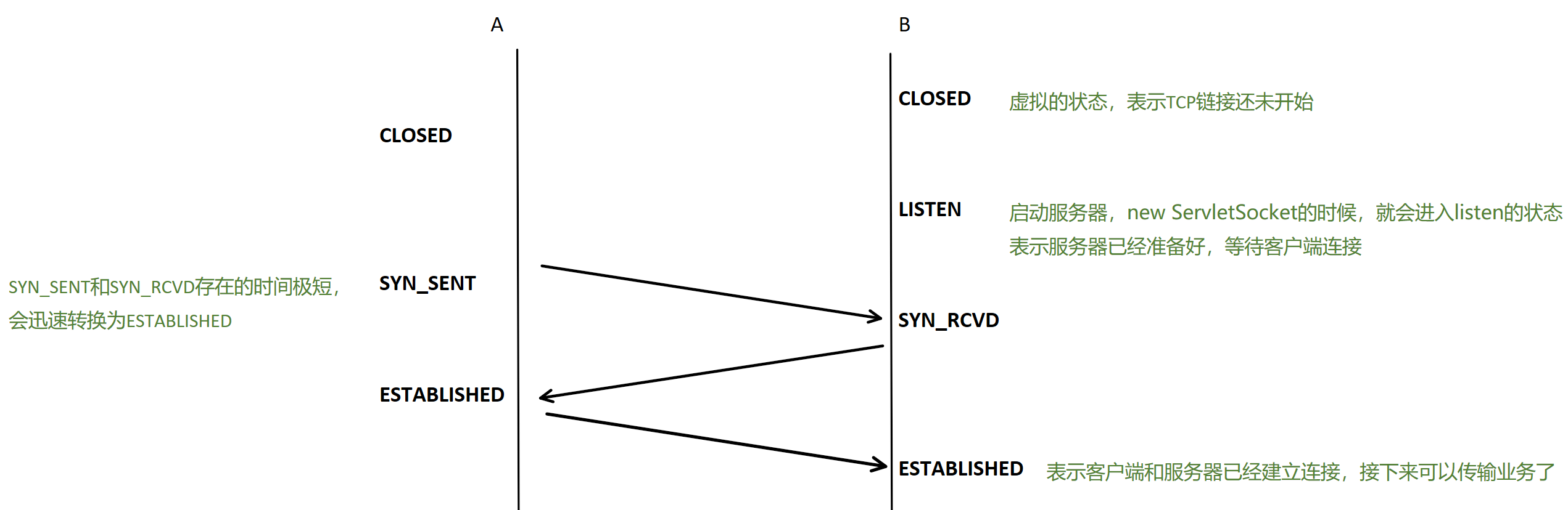 通过三次握手建立连接,四次挥手关闭连接。握手或挥手操作发送不携带业务的数据,通过这个数据"跟对方打个招呼"。