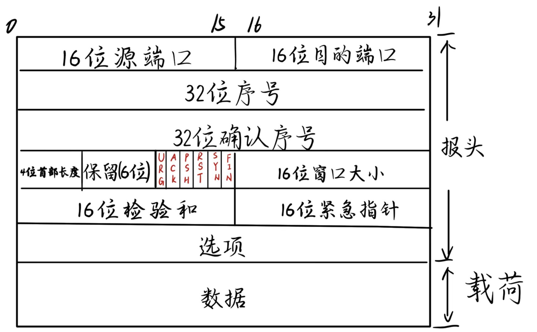 - 32位序号/确认序号:用于按序传输和确认接收。