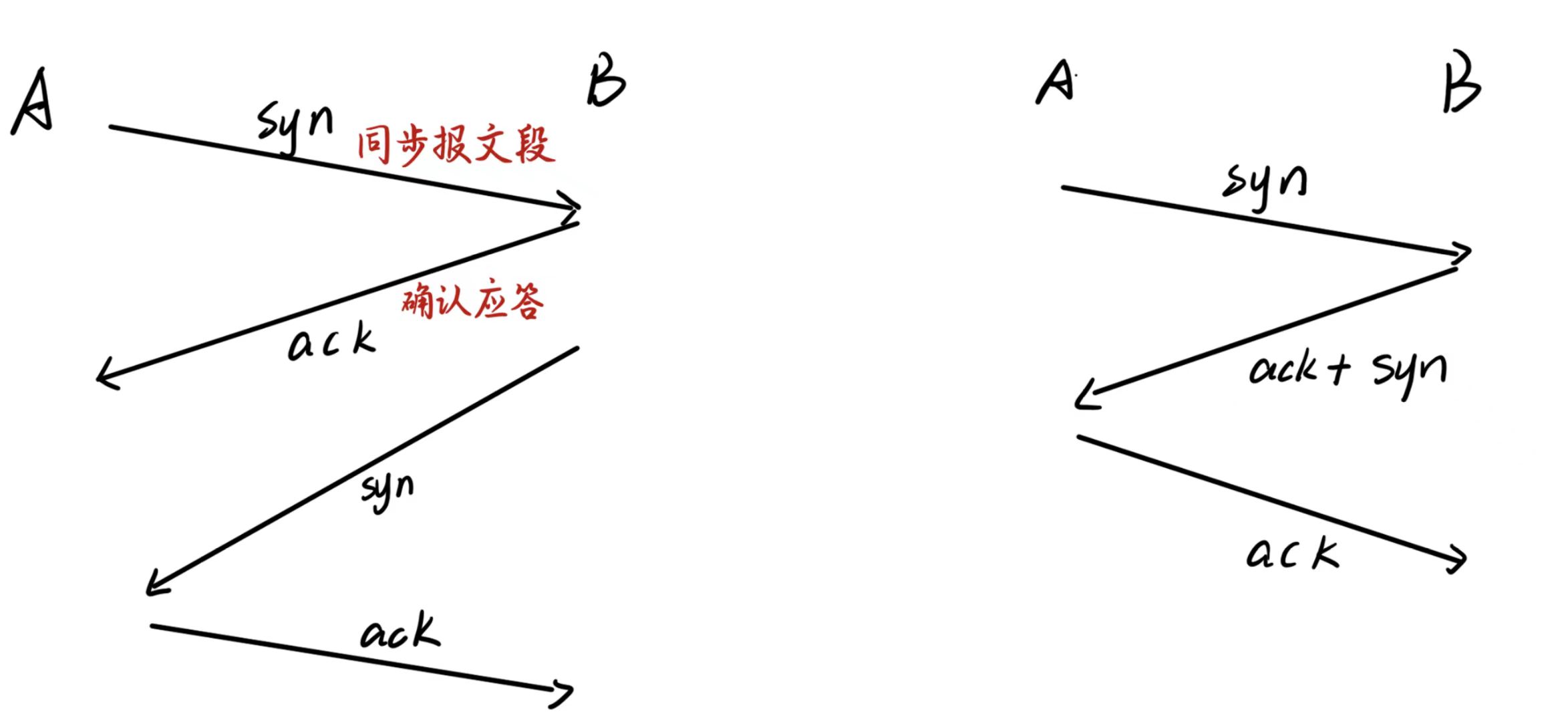 B确认应答ack和发送syn可以合并,这样就是"三次握手"。