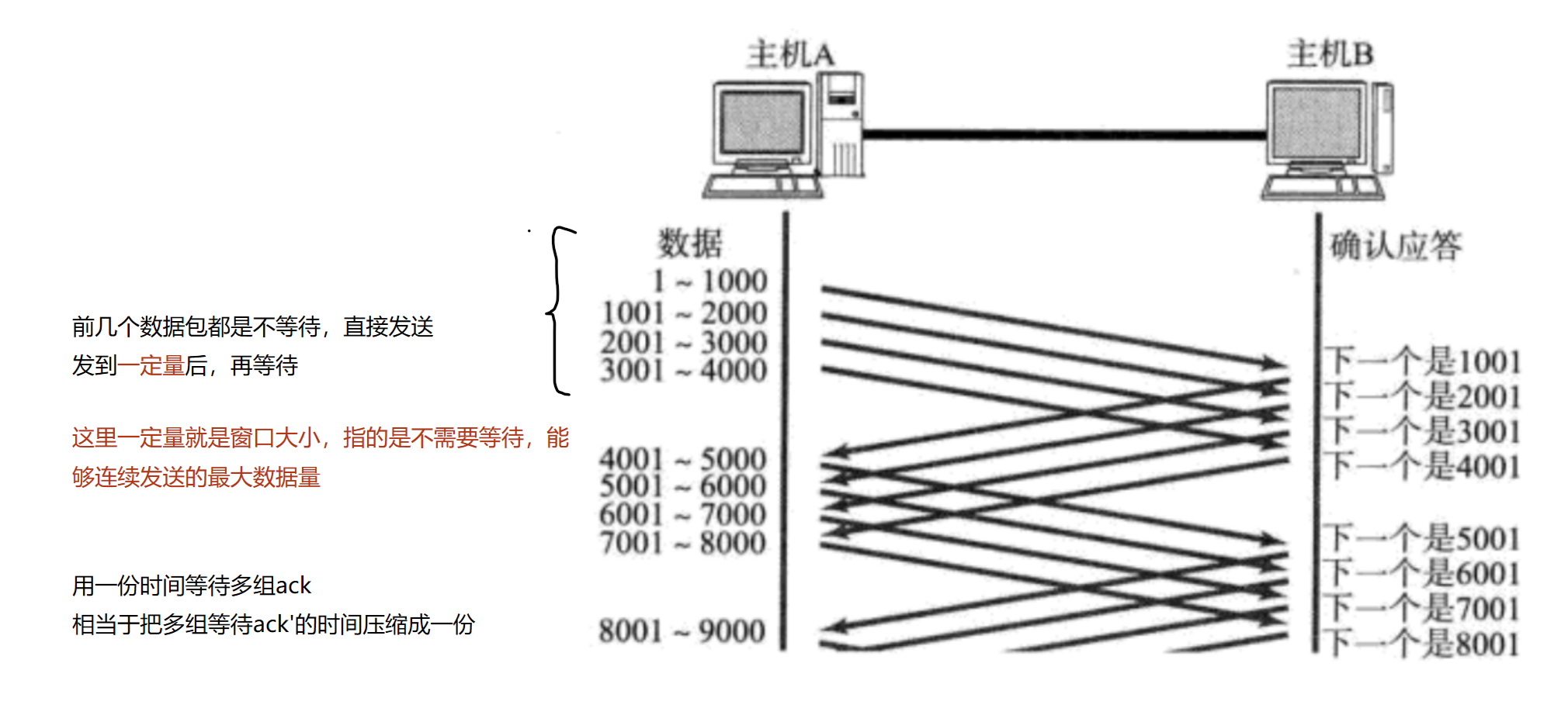 滑动窗口,窗口越大,效率就越高。但窗口不能无限大,接收方的处理能力是有上限的,这里的上限与代码逻辑有关。