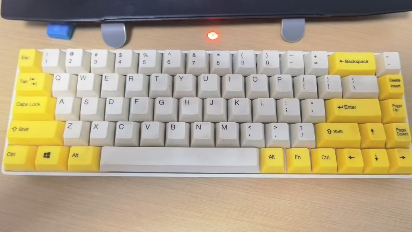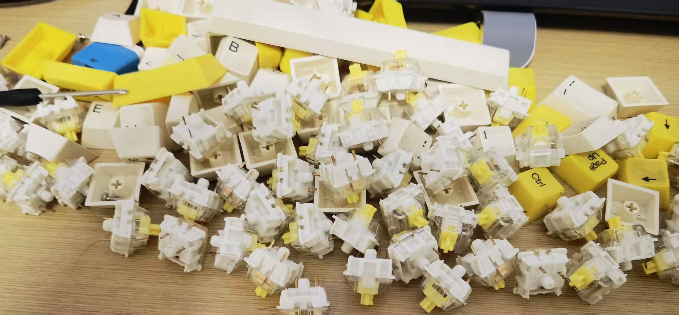 简单问题的键盘修复完成,CIY68套件+佳达隆黄轴+黄白PBT键帽的组合,简约设计,体验巴适。