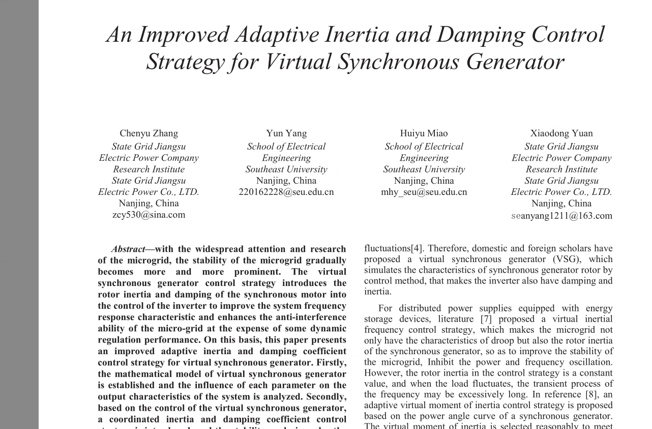 好的,让我们从一个轻松的角度出发,探讨一下虚拟同步发电机(VSG)的自适应控制策略仿真分析。如果你对电力电子或者新能源发电领域感兴趣,这篇文章可能会让你有所收获。